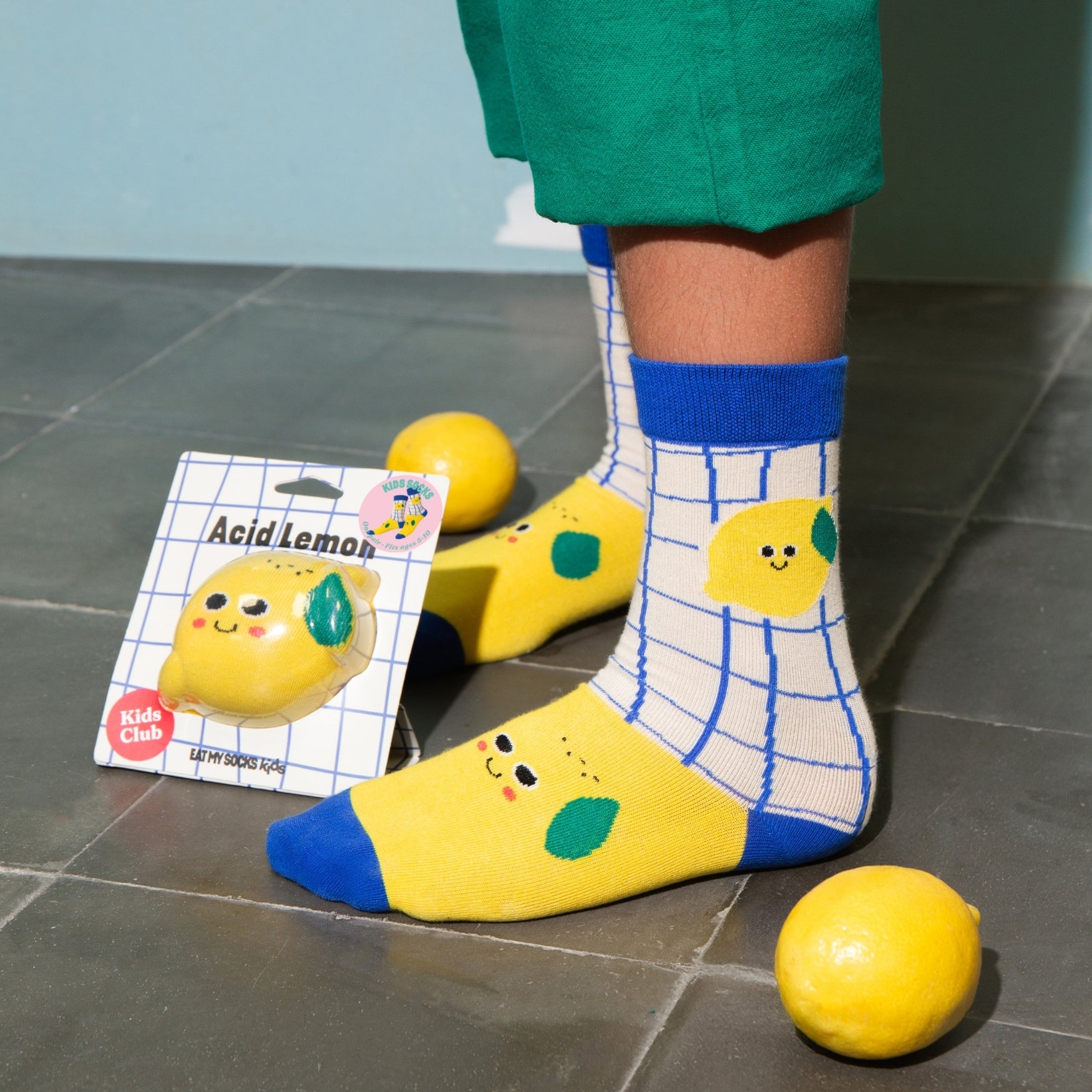 Bright, zesty, and full of fun—these Lemon socks for kids come packed like a real citrus fruit. A playful and colorful gift for little feet with big style.
