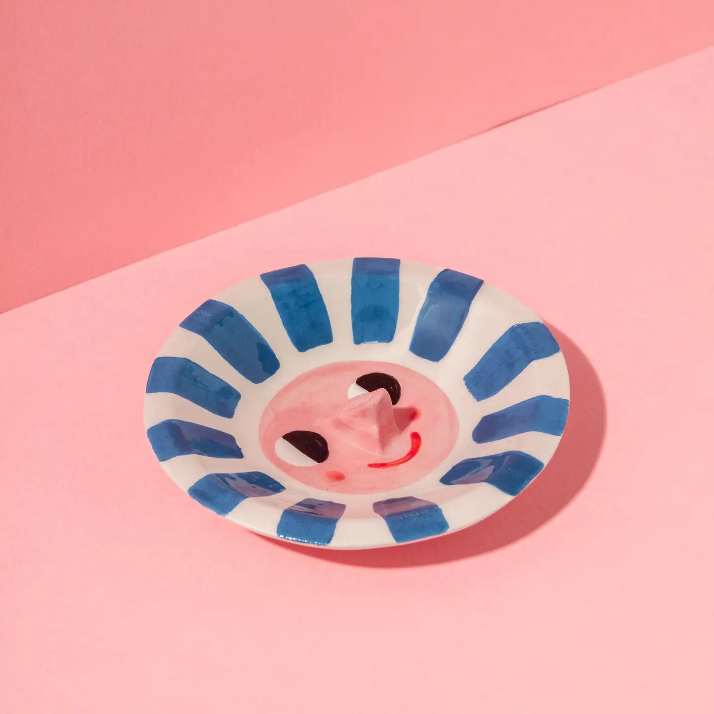 A joyful, hand-painted ceramic trinket dish, crafted from earthenware and finished with a glossy transparent glaze for a luminous shine.
