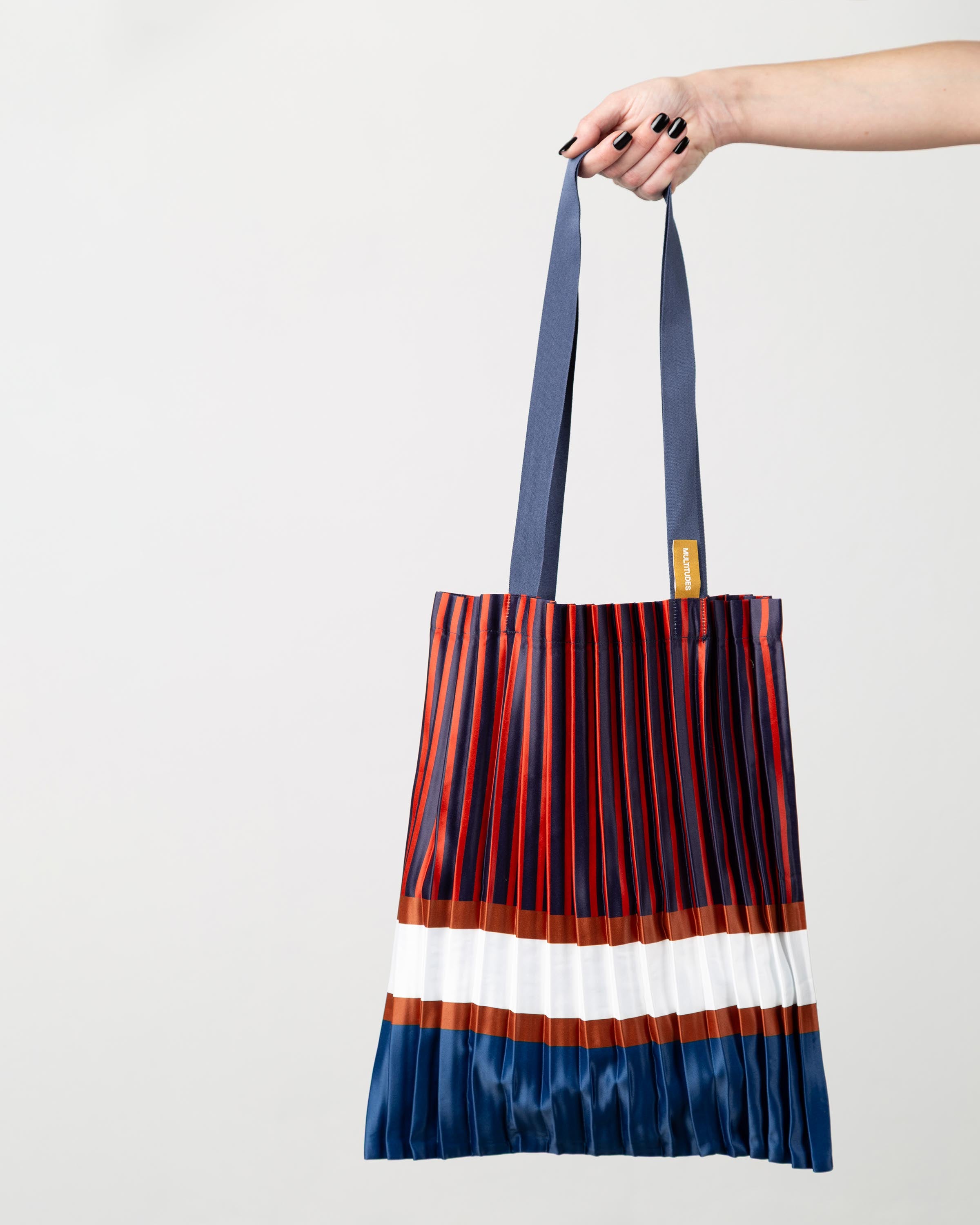 Thanks to the pleated design, the bag expands as you fill it, offering more space and flexibility than a classic tote, while remaining light and refined. Roomy yet elegant (40 × 48 cm), it’s crafted from silk-effect synthetic satin with strong, durable satin handles.