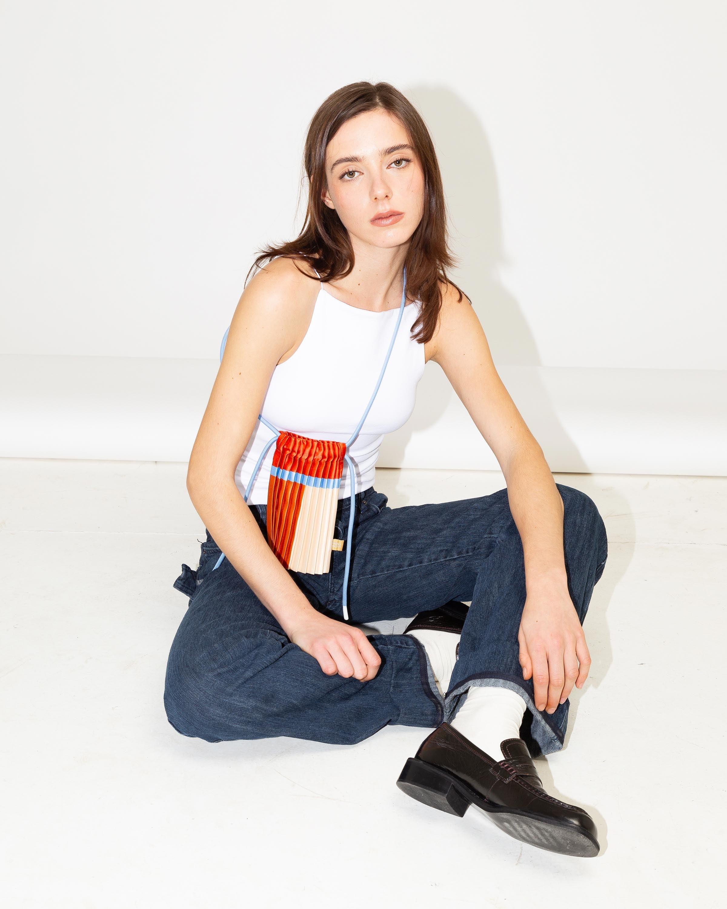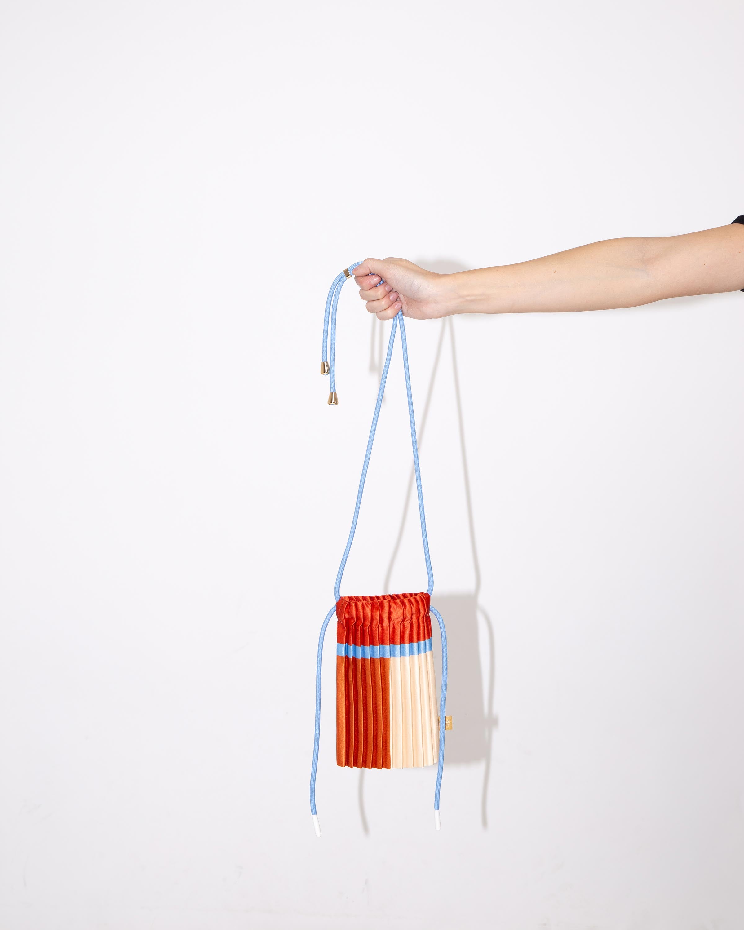 The satin pleated mini bag moves effortlessly with any outfit, from urban casual to polished looks. Pleats allow it to expand, fitting not just your phone but also your wallet, keys, and essentials (14 × 20 cm closed, up to 20 × 20 cm open).
